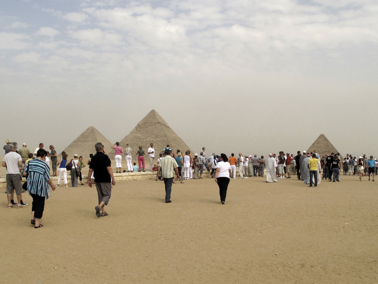 This is the kind of romanticized image of the pyramids most people have before visiting Giza. But the reality is, for better or worse, different — with certain parts of the pyramid complex overrun with tourists; with tour buses obstructing the view; and with the city creating a contrasting backdrop just beyond... I wouldn't say that it's disappointing, but the reality is more complex than the popular image.